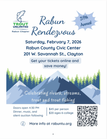 Watch our Facebook page or Tightlines, our monthly newsletter, for more information on the upcoming Rabun Rendezvous. Waa hoo!